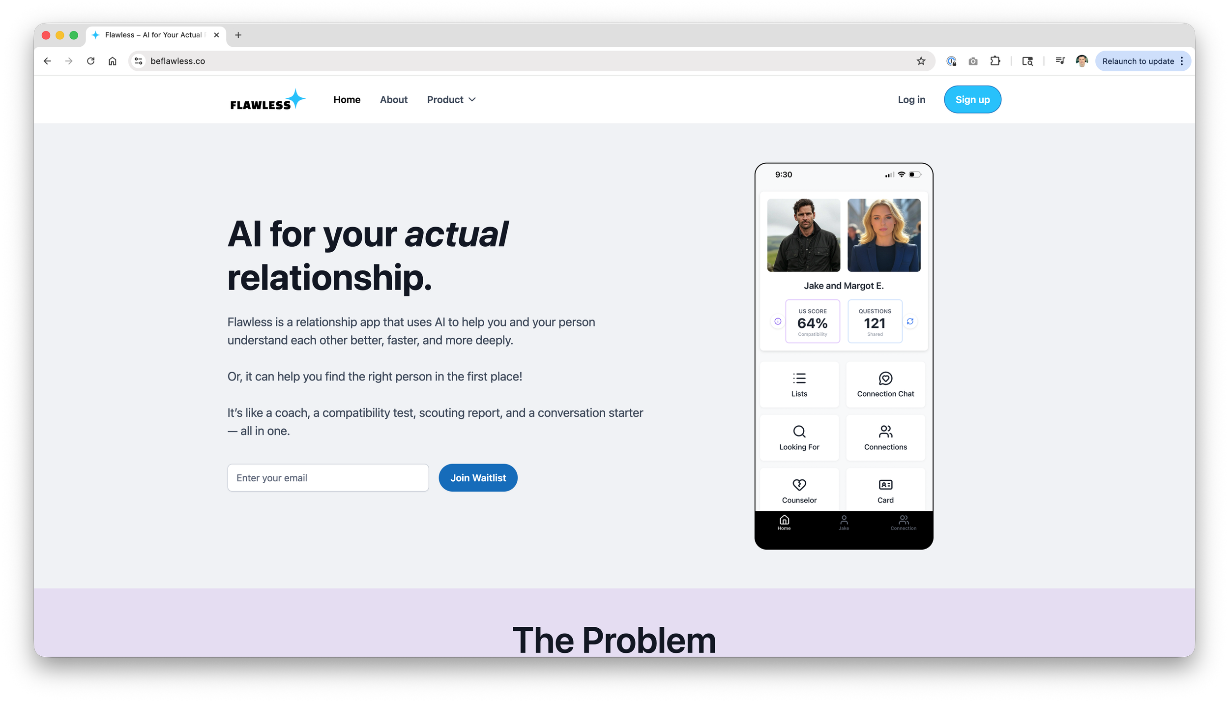 Flawless is a modern dating relationship app that uses AI to deeply understand compatibility between users. Instead of relying on superficial swipes, Flawless asks meaningful questions and calculates a single, easy-to-understand match score based on how well two people align on values, preferences, and priorities. It’s built for people who want smarter, more intentional connections—and who are tired of wasting time on matches that don’t go anywhere.